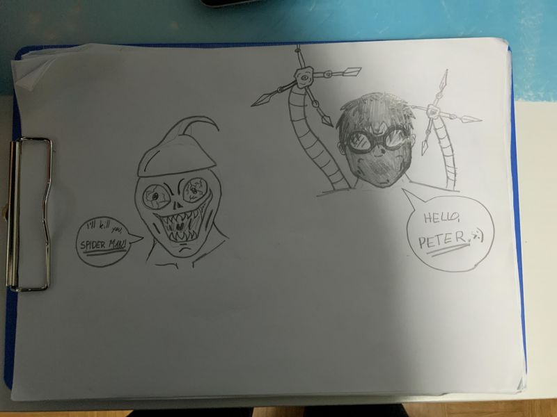 *zelena*AAAAAA SE ZMER NISM GLEDOU NWH !!! ampak tle je risbamog green goblina pa doc ocka sam da otto nima maske. tak da ja. moja druga risba s svinčniki, k sm jih dubi že lani januarja ampak sm pozabu na njih. *zelena*