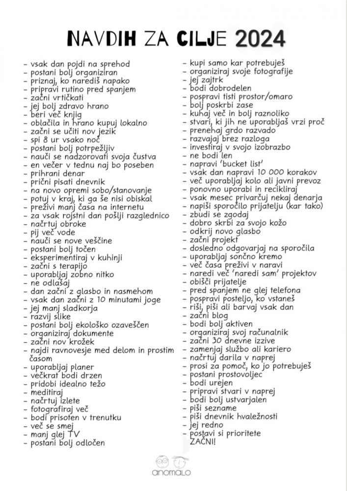 Na priloženi fotografiji spodaj je screenshot seznama navdihov za cilje*, ki si jih (po želji) lahko zastavite v letošnjem letu. (Nekatere ideje so reees mega ;))