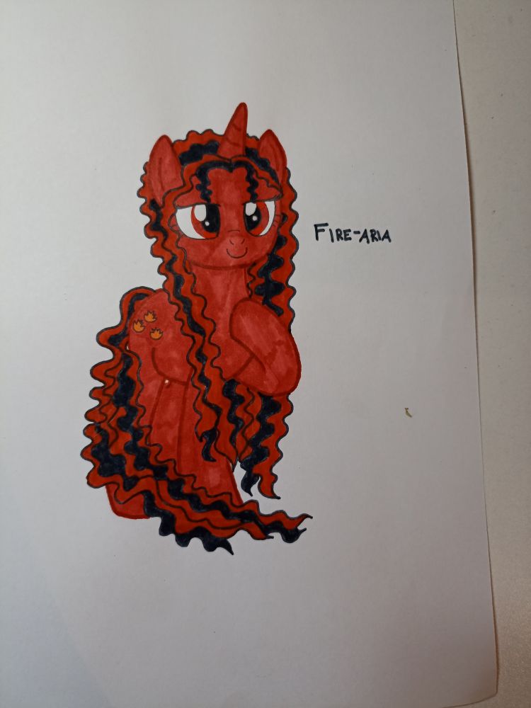 Tukaj je pony po tvojem opisu. :) Se opraviÄujem za malo boge barve haha xD ampak nimam zelo svetlo rÄece in temnejÅ”e rdeÄe. Se mi pa zdi, da je kar vredu nastalo. Upam tudi, da ti je ime vÅ”eÄ. :))