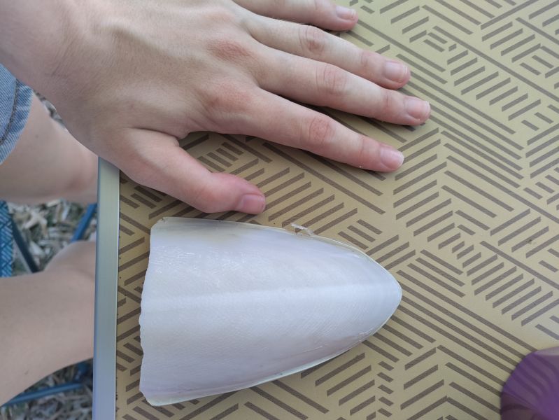 Tukaj je polovica sipine kosti ki sem jo našla na plaži, v primerjavi z mojo roko