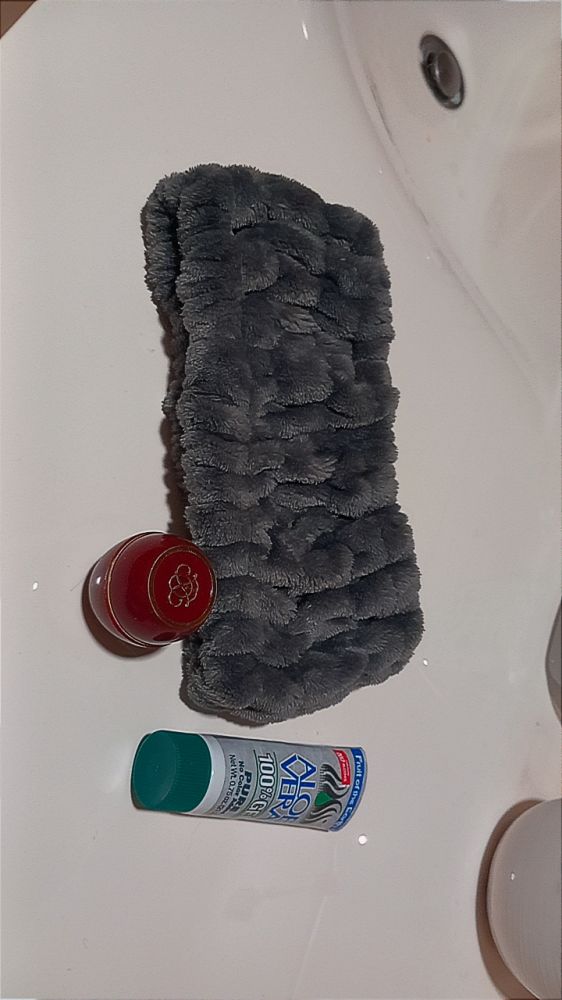 1. na sliki je trak za lase. To uporabljam, da medtem ko se mažem z kremami, imam gor masko,... Kupila sem si jo v Mullerju za 6ā¬.