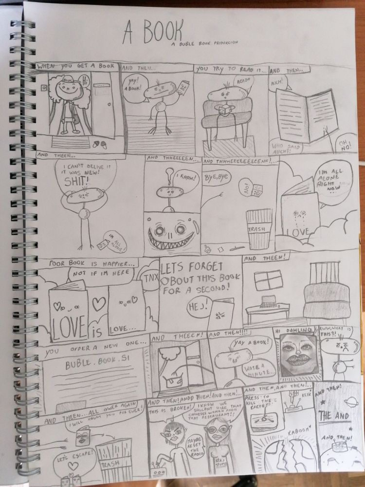 Hi, po dolgem času sm zdej nardila strip. Ve123 če to vidiš kako si? Kaj se kej dogaja v domu? Jst sm doma in rišem. No to sem že pred neki časa narisala. No poglejte si: