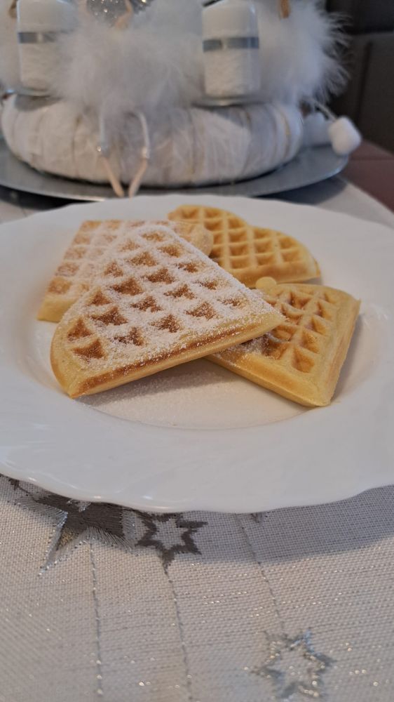 No, tukaj vam pošiljam sliko mojih prvih vafljev! 🧇