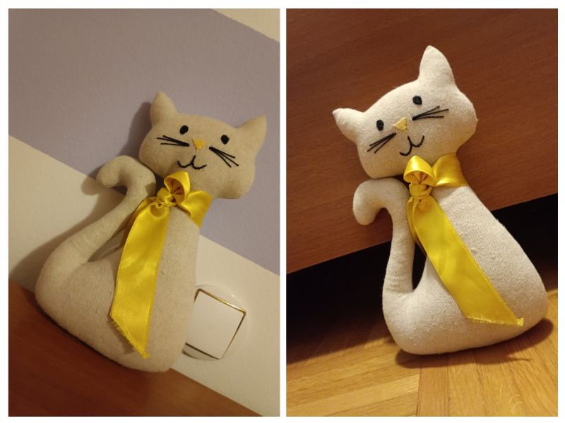 Motiv pri obeh slikah je bila moja plišasta mucka, ki jo mam običajno na levi nočni omarci.