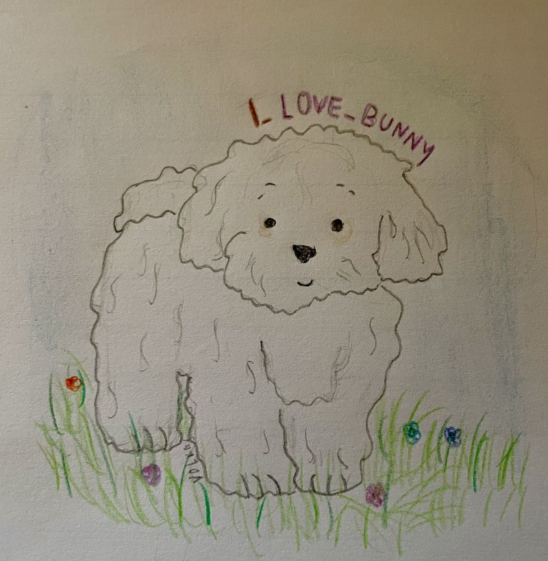 Narisala sem maltežana ( ta pasma je res lušna :heart_eyes:)in dodala malo ozadja, da kuža bolj izstopa upam, da ti je všeč.:slight_smile: