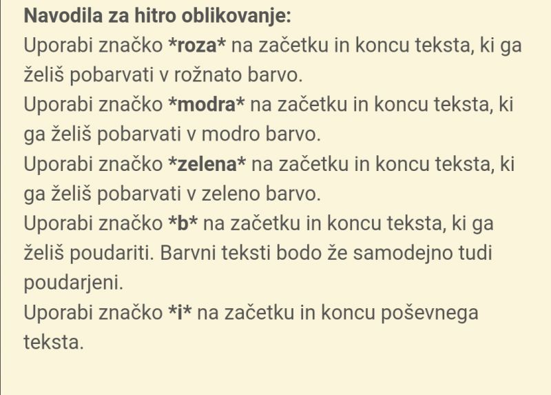 PaÄ Äe hoÄeÅ” pobarvat nekaj na roza nardiÅ” to: *roza * nekajjjj * roza* (sam da brez presledkov) in pride tole *roza* nekajjjj *roza*