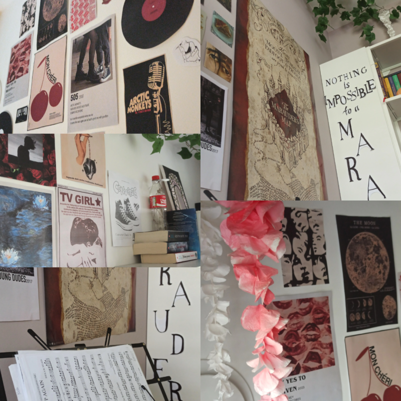 Posterji so *b*nujni*b* v downtown aesthetic sobi. Recimo posterji od glasbenikov ki jih poslušaš, posterji od najljubših filmov, serij al pa sam random aesthetic posterji k jih najdeš na pinterestu hihi<33