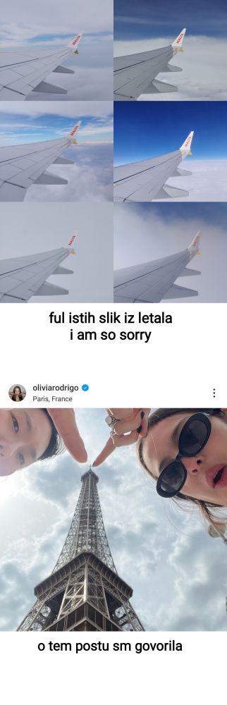 pol sm se začela že dolgočast zto kr 20 minut je ful velik an :rolling_eyes: in sm sla na instagram. IN KAJ VIDM?? olivia rodrigo je ibjavla svoj photo dump iz pariza in sm sm tko fak sj res! ona je v parizu:v: na svoji slay turnejiii
