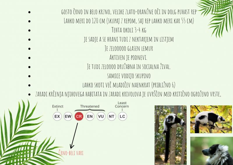 Na vrsti so podatki o čro-belem variju *i*(reče se jim tudi white-black ruffed lemur itd.)*i*: