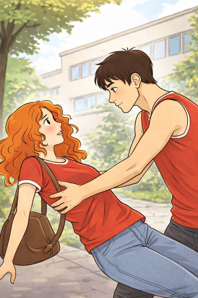 Tisti hip je mimo njiju prišel lep postaven in čeden fant. Tisti hip je videla samo njega. Začutila je metuljčke v trebuhu in ona je vedela kaj to pomeni. Ta tip ji je bil všeč. Nato je zazvonilo za začetek pouka in gruča ljudi je šla v šolo. Z najboljšo prijateljico je šla proti vhodu v šolo. Bila je zelo velika gužva. Nek tip je potem za hec skočil en korak nazaj in ravno za njim je stala Eyla. Eyla bi močno padla če je ne bi rešil njena simpatija na prvi pogled. Zadnji hip jo je ujel.