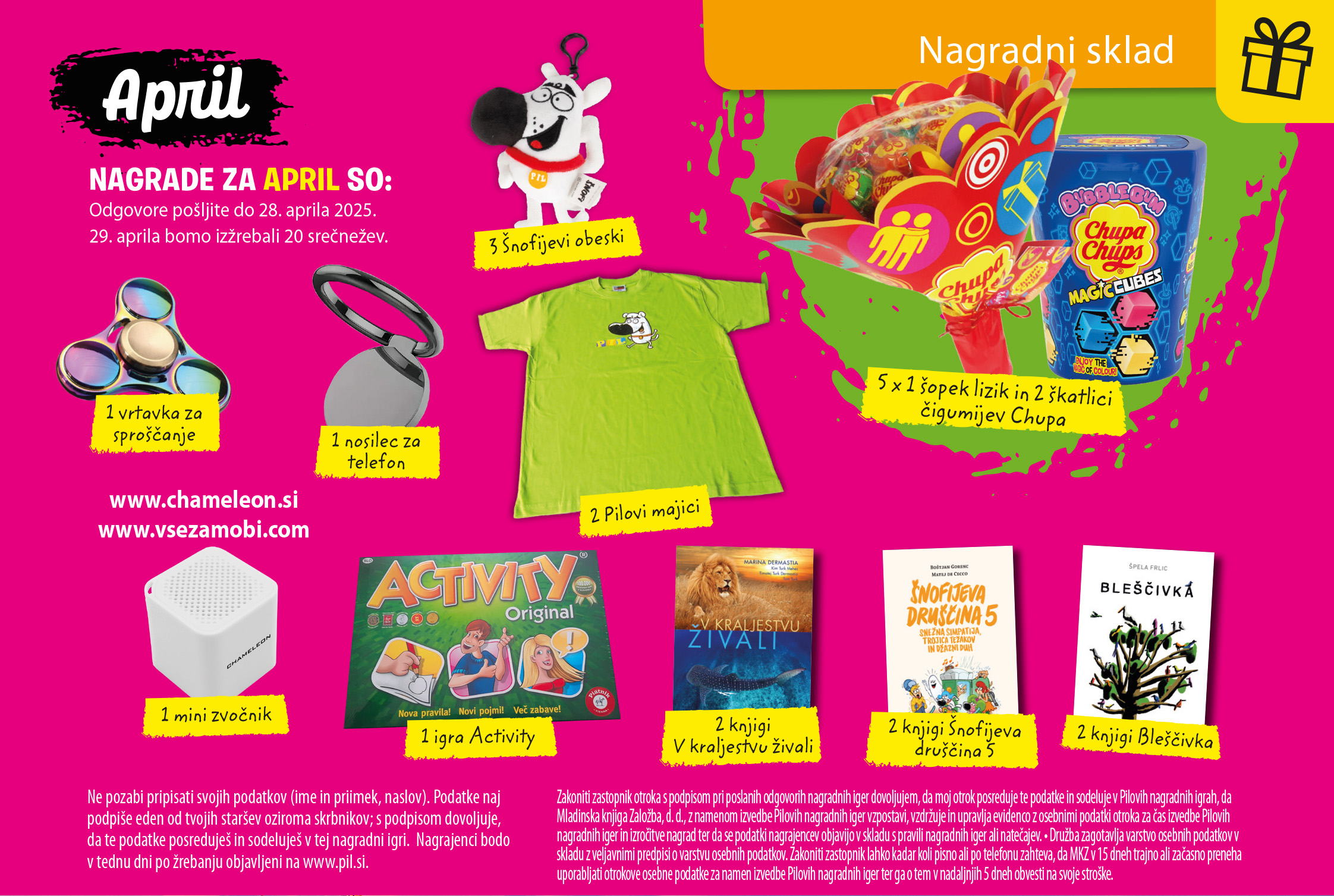 Nagrajenci bodo objavljeni v rubriki Nagrajenci na spletu.